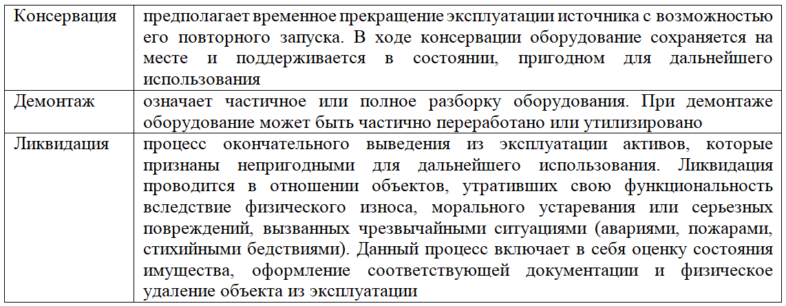 Консервация, демонтаж и ликвидация источников выбросов и выделения загрязняющих веществ – это различные процессы, преследующие разные цели (табл. 1).