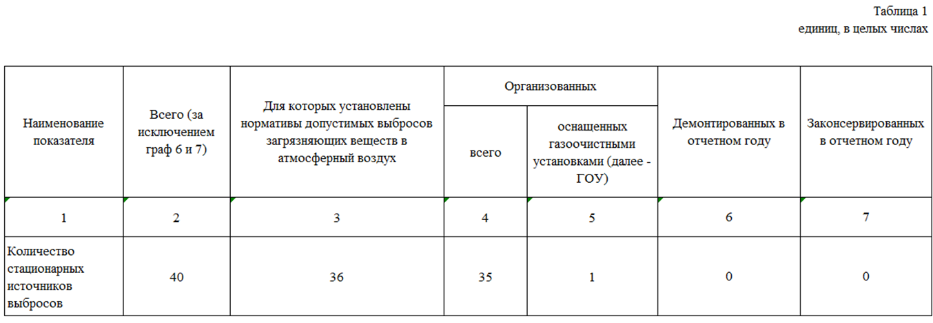 Раздел I состоит из трех таблиц. В таблице 1 отражается информация об имеющихся у природопользователя стационарных источниках выбросов: