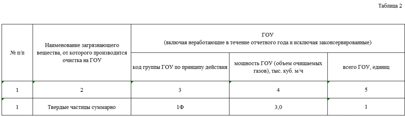 В таблице 2 отражаются данные об имеющихся ГОУ на конец отчетного года, включая неработающие в течение отчетного года и исключая законсервированные (ранее данная информация не отображалась в отчете):
